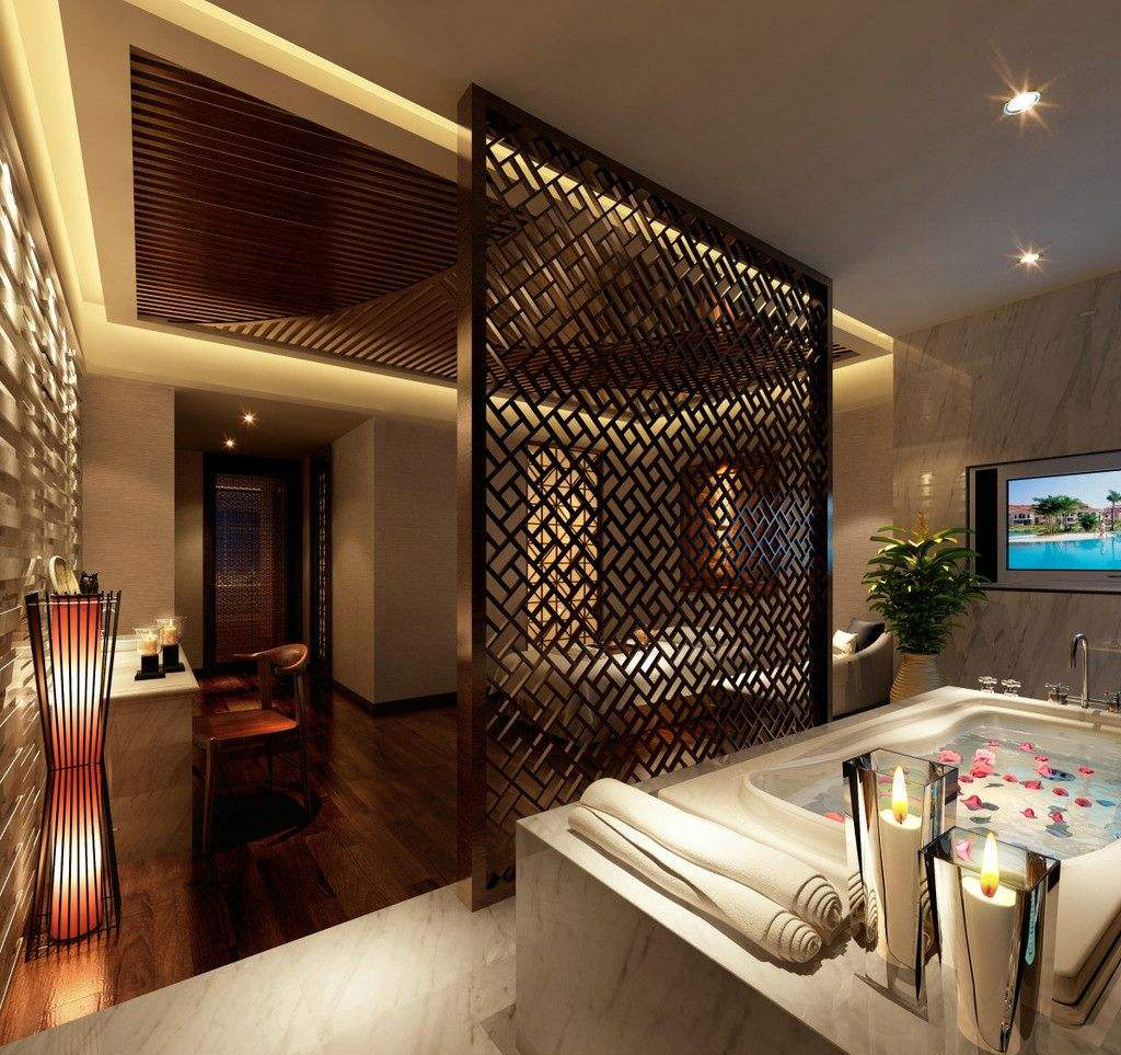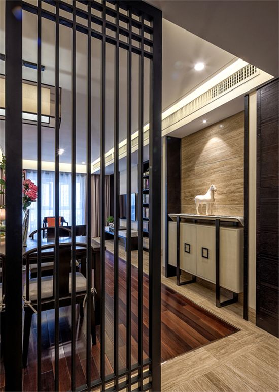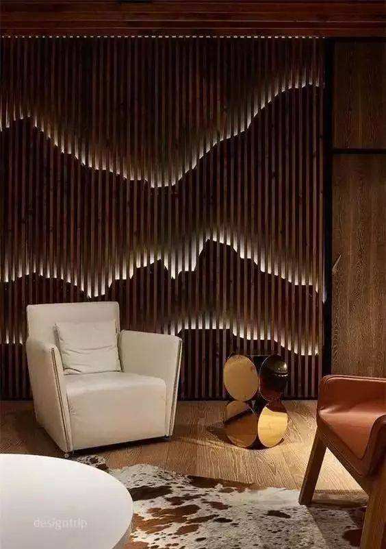 “栅”意为用竹木铁条等做成的阻拦物。格栅作为隔断,可以做到朦胧优雅不沉闷,创造光与影的朦胧之美,光线透过格栅呈现出一种如同皮影戏的效果。